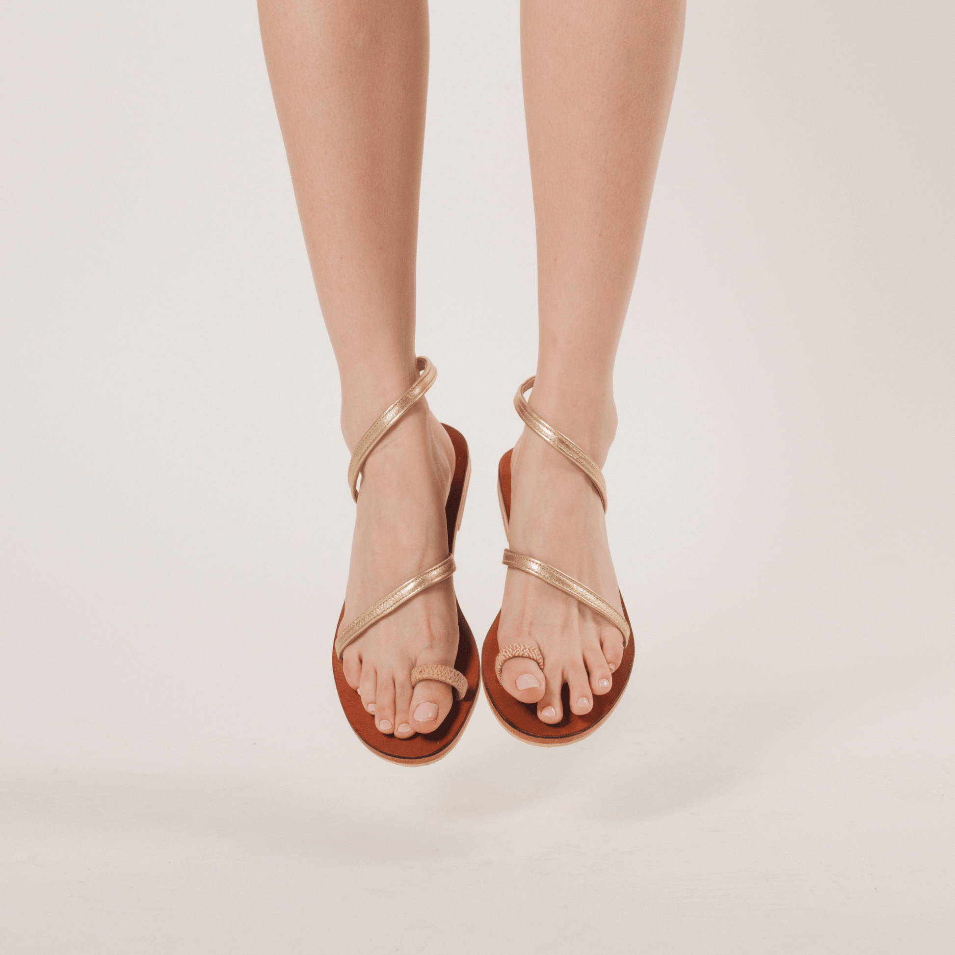 Elegant metallic straps, accented with a sleek toe-loop detail in our signature nude textile.